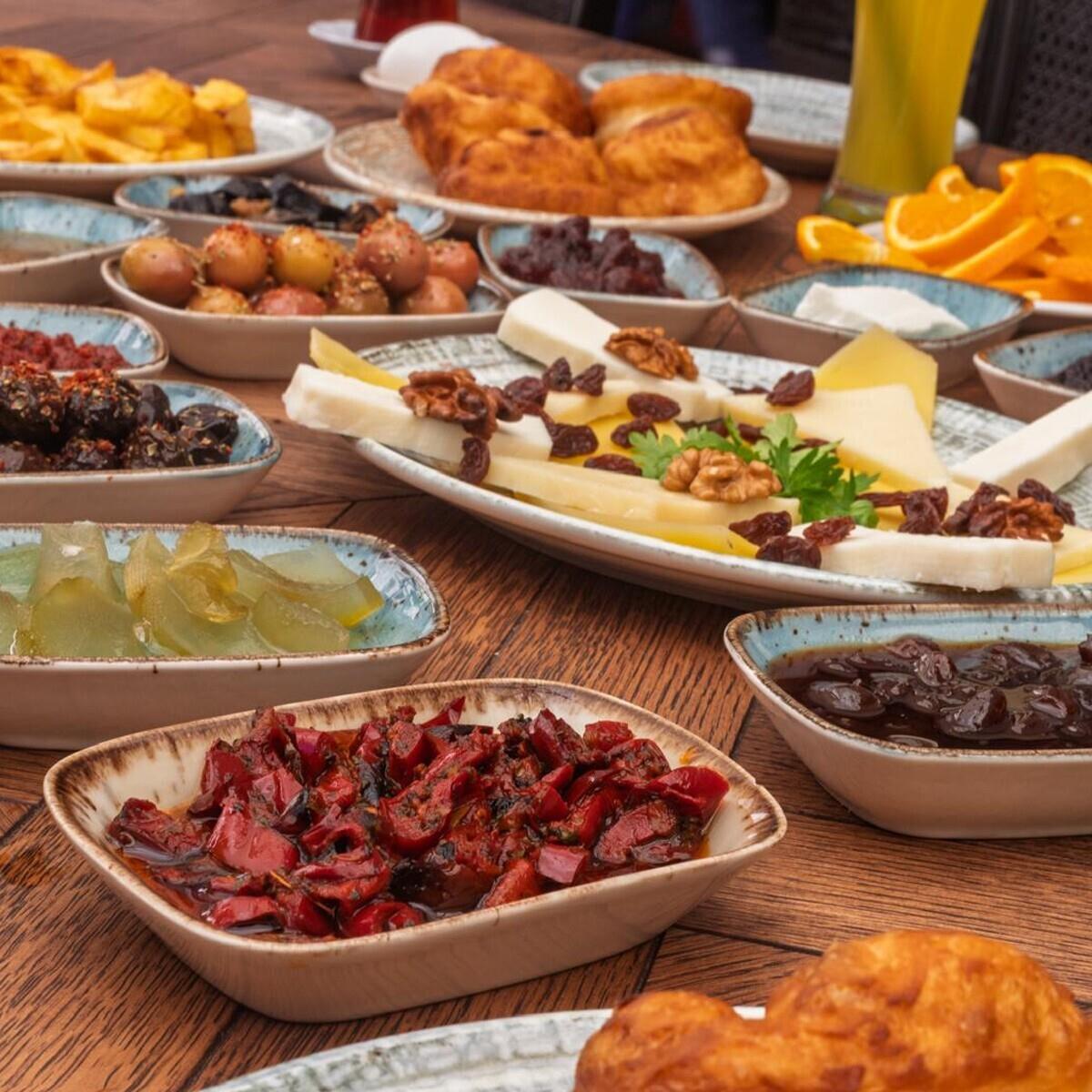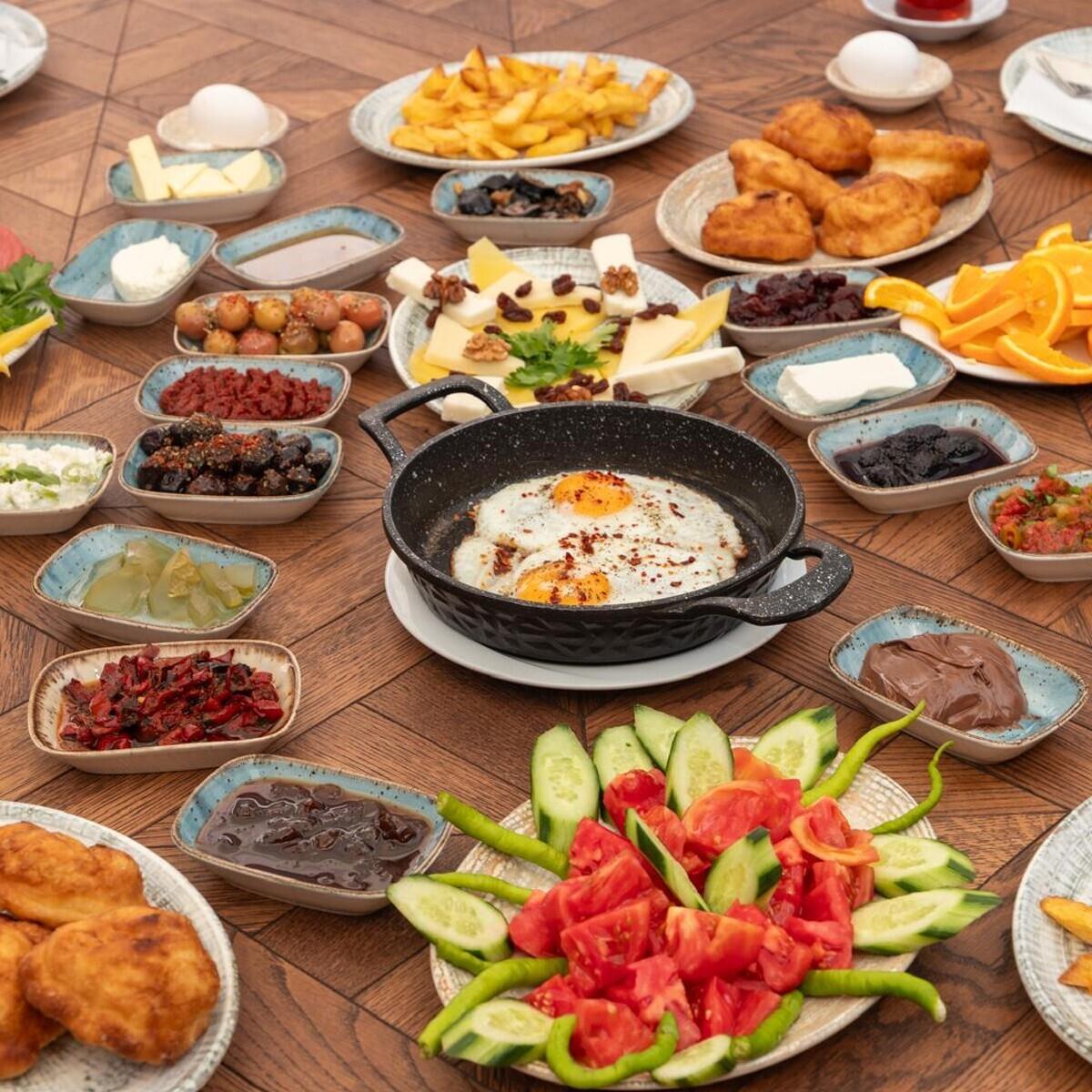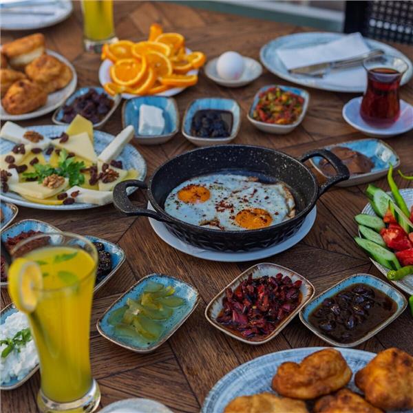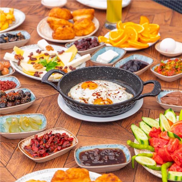 Kahvaltılıklar: Anne Pişi • Bal • Tereyağı • Kaymak • Karadutlu Tatlı Lor • Lorlu Biber • Paprika • Acuka • Çikolata • Acılı Sos