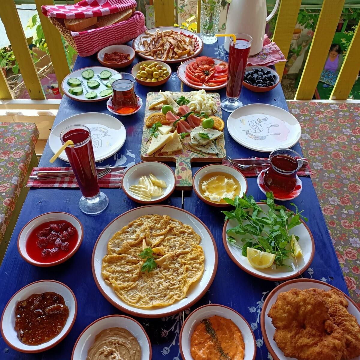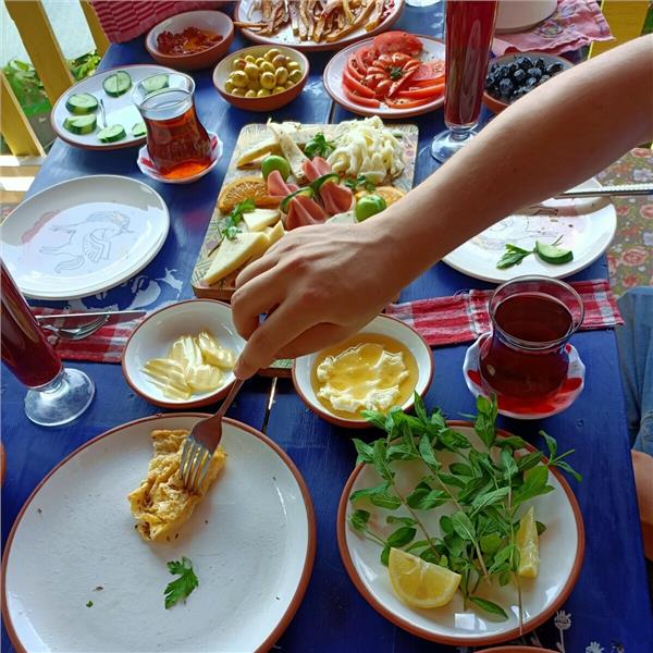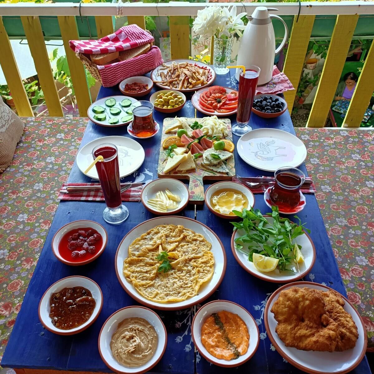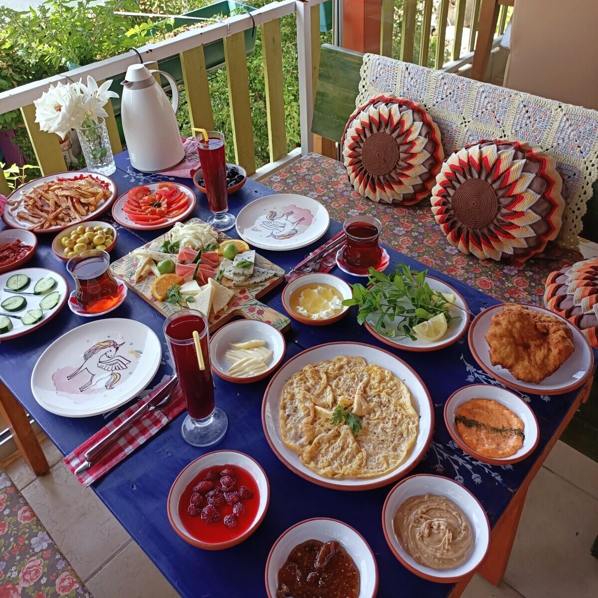 • 2 çeşit el yapımı reçel, süt kaymak, çiçek balı, Tire tereyağı