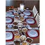 Katıklı, Sigara böreği, Pişi, Patates kızartması, Zeytin iki çeşit, Domates ve salatalık, Kekik salatası, Tuzlu Yoğurt Çökelek, Patates salatası, Domates sosu, Biber ezmesi, Reçeller, Tereyağı ve Sınırsız Çay