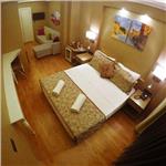 Modern oda donanımı: TV, banyo, duş, klima, oturma alanı ve ücretsiz Wi-Fi.