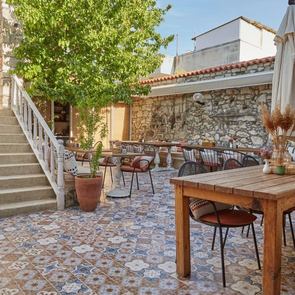 Keyifli Avlu Atmosferi: Otelin kendine has avlusunda kahvenizi yudumlarken Alaçatı’nın esintisini hissedin.