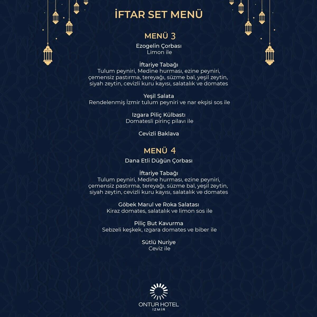 Sınırlı kontenjanla sunulan bu özel iftar deneyimini kaçırmamak için yerinizi erkenden ayırtın. Ramazan akşamlarını lezzet ve huzurla taçlandırmak için Ontur Otel İzmir iftar rezervasyonunuzu hemen tamamlayın.