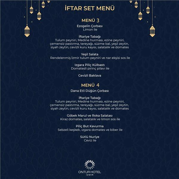 Zengin menü seçenekleriyle hem klasik Ramazan lezzetlerini hem de özel sunumları bir arada bulabileceğiniz bu özel iftar organizasyonu; aileler, arkadaş grupları ve sevdiklerinizle keyifli bir akşam geçirmek için ideal bir ortam sunuyor. Şık atmosferi ve kusursuz servis anlayışıyla Ontur Otel İzmir, iftar davetlerinize ayrıcalık katıyor.