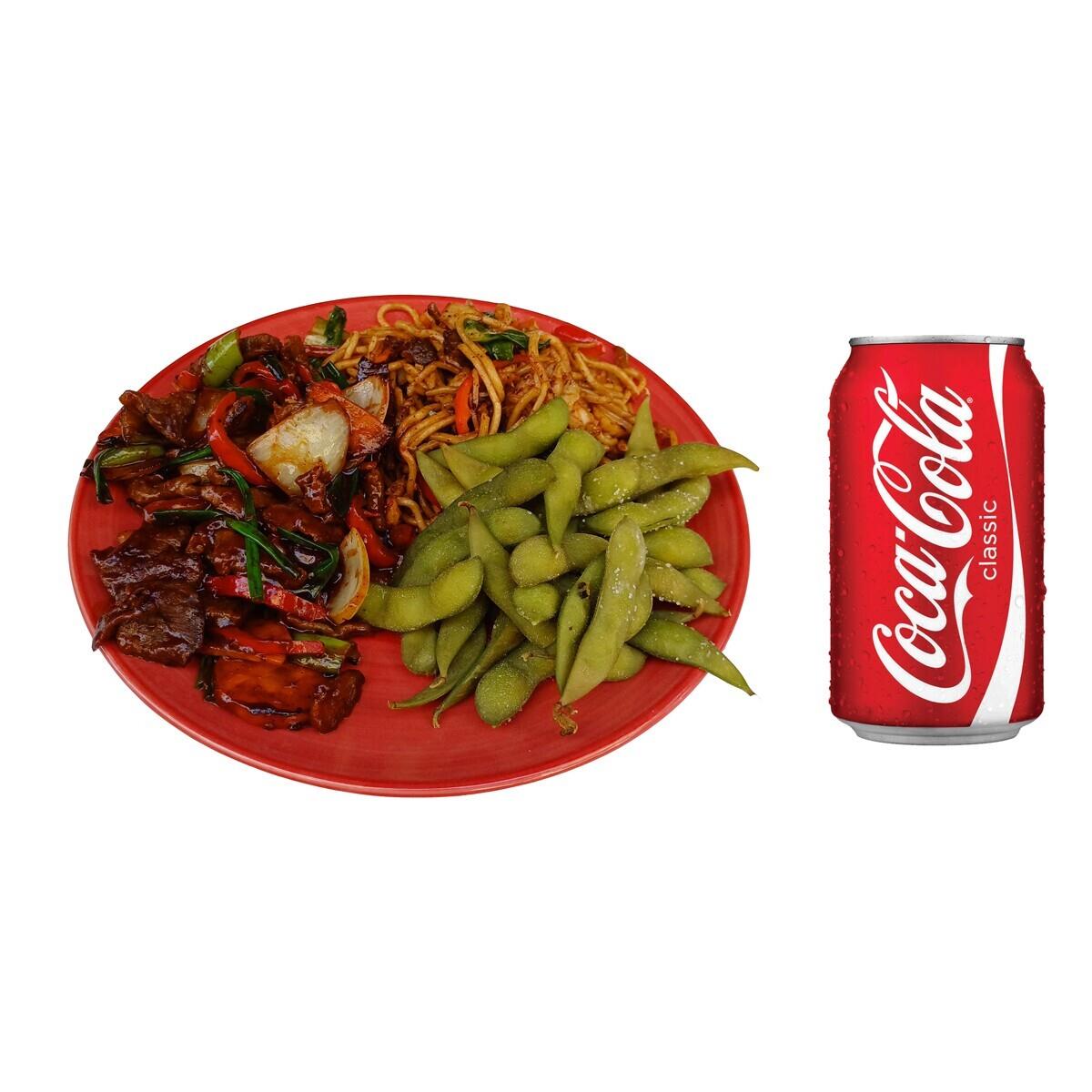 Mix Menü 3: Yarım Sarımsaklı Dana + Yarım Karışık Noodle + Yarım Edamame + Kutu İçecek