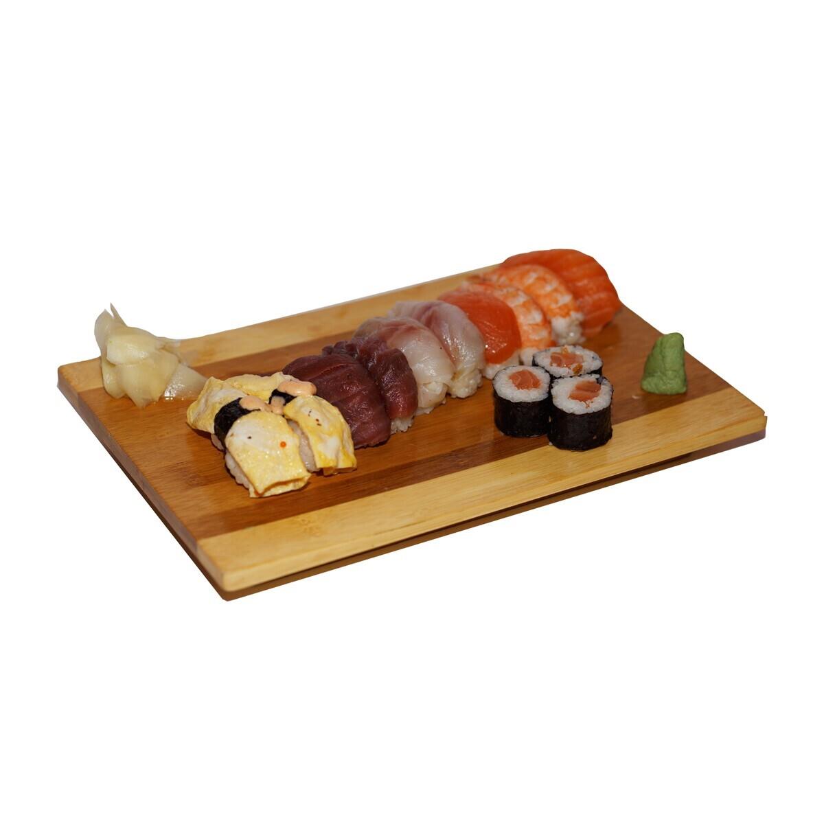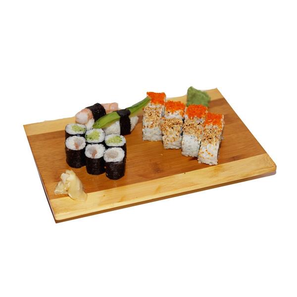 16 Parça Sushi Mini Set: 4 California Roll, 4 Philadelphia Roll, 3 Suzuki, 3 Kappa Maki, 1 Ebi, 1 Avokado Nigiri
